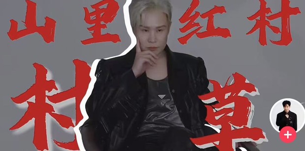 这套衣服倒是比较宽松,显得他挺瘦的,接下来又穿了一件很长的红色外套大衣。