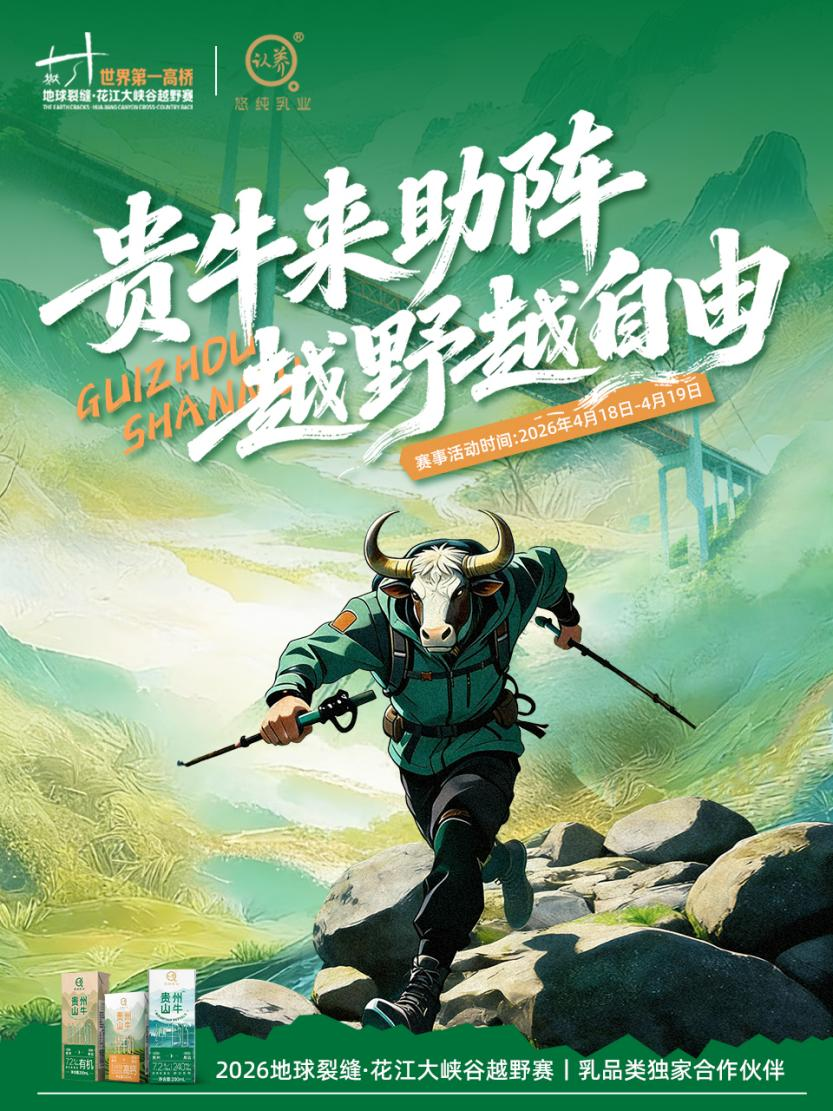贵州省安顺市关岭县花江镇,世界第一高桥花江峡谷大桥的巍峨与“地球裂缝”花江大峡谷的壮美景色交相辉映,一场融合自然奇观、运动激情与品牌温度的越野赛事即将启幕。2026年4月18日-19日,“世界第一高桥 2026地球裂缝·花江大峡谷越野赛”将在这里震撼开赛,作为赛事乳品类独家合作伙伴,悠纯乳业将携“贵州山牛”系列产品深度参与,为这场“桥旅体”跨界实践注入高原鲜活动力。