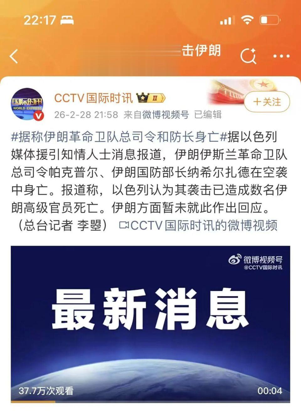 据以色列媒体援引知情人士消息报道,伊朗伊斯兰革命卫队总司令帕克普尔、伊朗国防部长纳希尔扎德在空袭中身亡。报道称,以色列认为其袭击已造成数名伊朗高级官员死亡。伊朗方面暂未就此作出回应。
