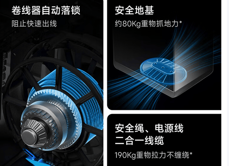 l 安全操作不触碰:机器工作时禁止用手触碰机身或拉扯电源线,若机器暂停在高空,先按“暂停键”确认吸附稳定后,通过安全绳缓慢取下;高层必须将安全绳一端系在室内固定重物(如暖气片等)。