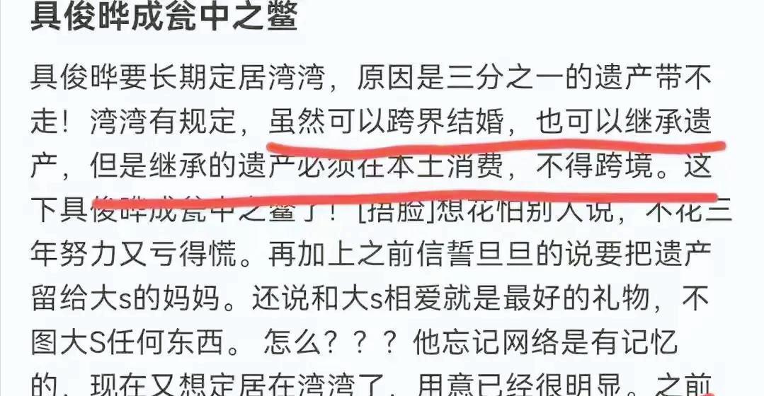 台北市中山区某高档住宅区门口,一位韩国男子正用不太流利的中文与银行职员交涉房产抵押事宜。这个画面意外成为台湾社交平台的热搜话题——大S遗产风波爆发一个月后,现任丈夫具俊晔首次公开处理亡妻留下的千万豪宅债务。这场看似普通的财务纠纷,却意外撕开了跨国婚姻遗产继承的复杂面纱。