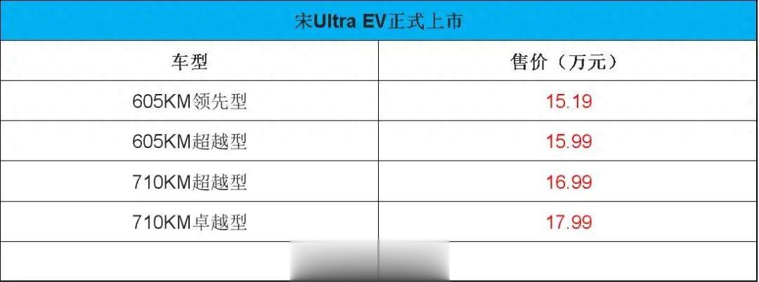 【懂车之道 产品】近日,懂车之道获悉,3月26日,比亚迪宋Ultra EV正式发布上市,共推出4款车型,官方售价区间15.19-17.99万元。全系搭载比亚迪第二代刀片电池及闪充技术,车辆还可选装天神之眼B-辅助驾驶激光版,支持城市领航辅助、全场景智能泊车辅助等。下面,和大家一起来详细看看新车的产品力如何?