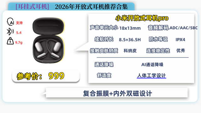 第十款:小米开放式耳机Pro(999元)