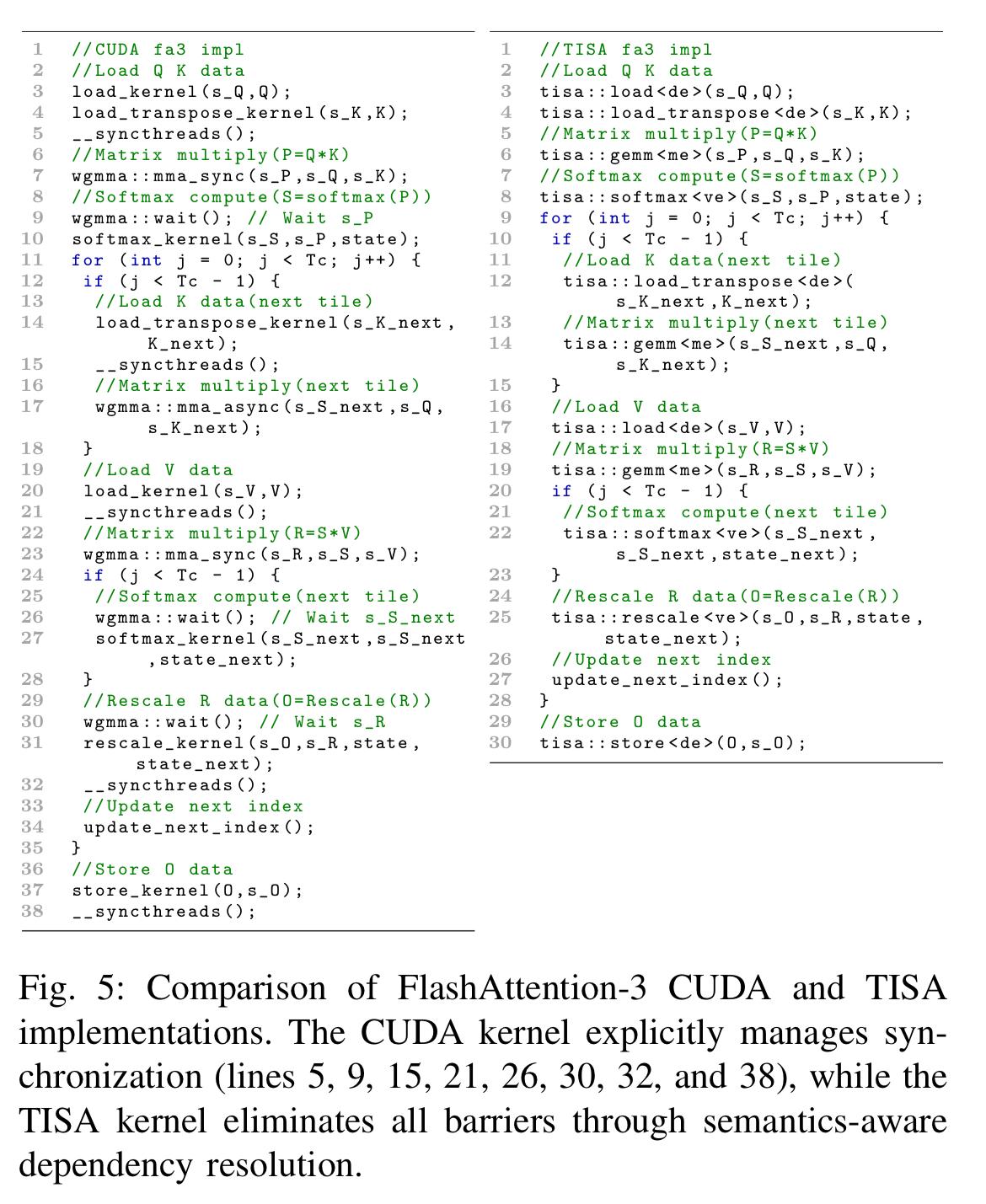 CUDA版代码(左)与TISA版代码(右)对比