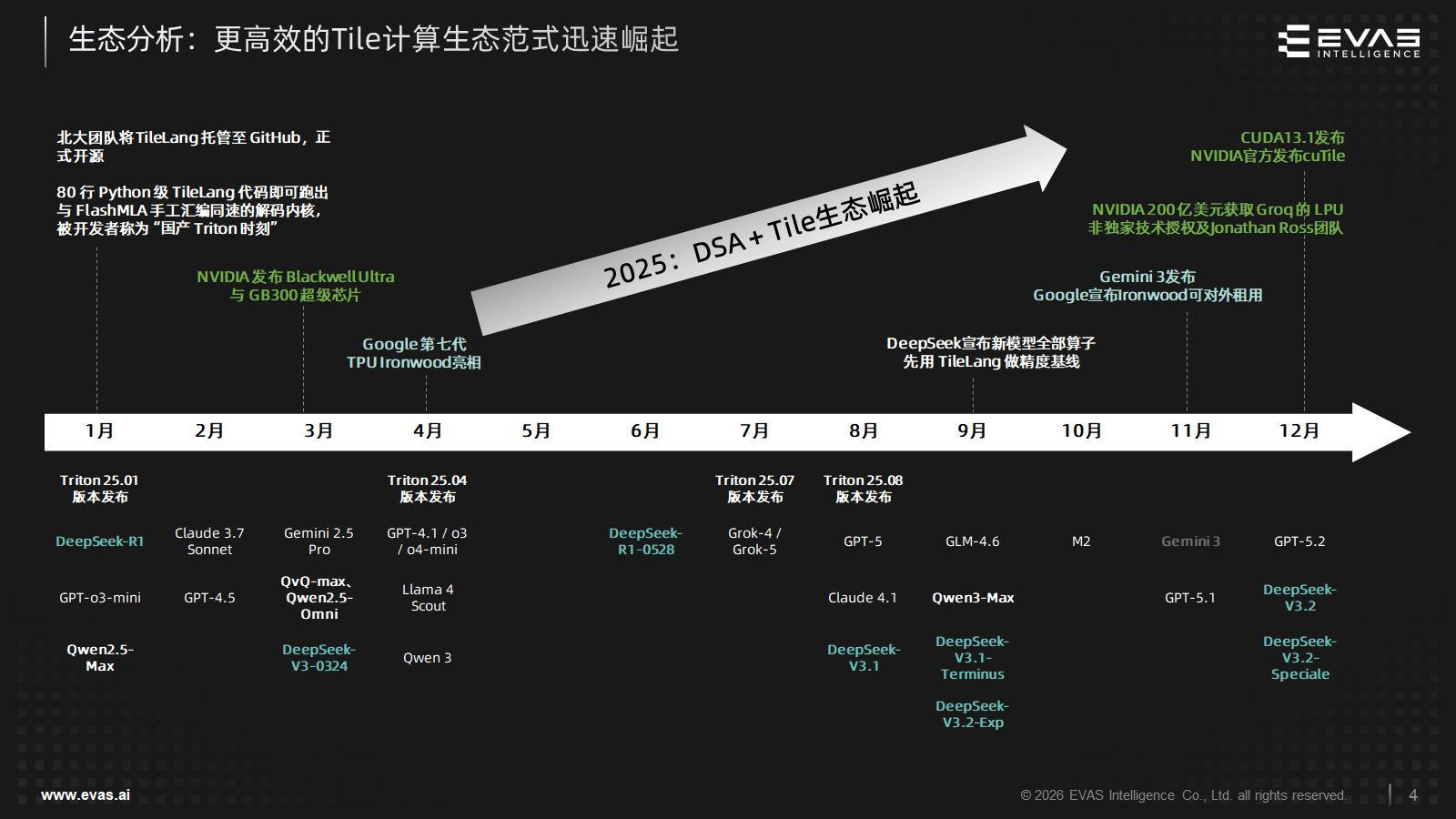这已经成为目前行业的共识,2025年Tile编程范式迎来爆发:从英伟达发布CUDA 13.1与cuTile工具链到北大开源TileLang获得“国产Triton时刻”的赞誉,再到DeepSeek更宣布新模型算子优先用TileLang做精度基线。可以说,让Tile抽象成为行业共识,既能适配AI模型特性,又能充分挖掘芯片并行潜力。