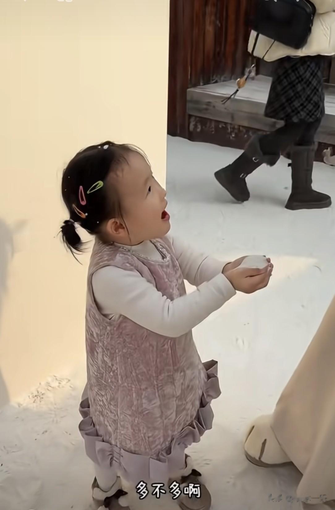 之后黄一鸣还帮闪闪拍了好多雪景照,闪闪一会儿靠着积雪的木板摆可爱姿势,小手比着耶,眼睛弯成小月牙;一会儿又跑到镜头前,对着镜头吐舌头、眨眼睛,灵动的小表情萌翻众人,雪花落在她的小肩膀和发梢,衬得小家伙皮肤白白嫩嫩,像个雪地里的小天使。