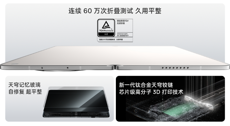 当然,1TB版本吃香,核心还是Find N6本身的产品力够硬。这款新机直接破解了折叠屏多年的折痕难题,新一代钛合金天穹铰链+天穹记忆玻璃,让它拿下莱茵久用平整认证,60万次折叠后依旧平整。同时它还拥有IP56/IP58/IP59满级防水认证加成,日常溅水、冲水都不怕。
