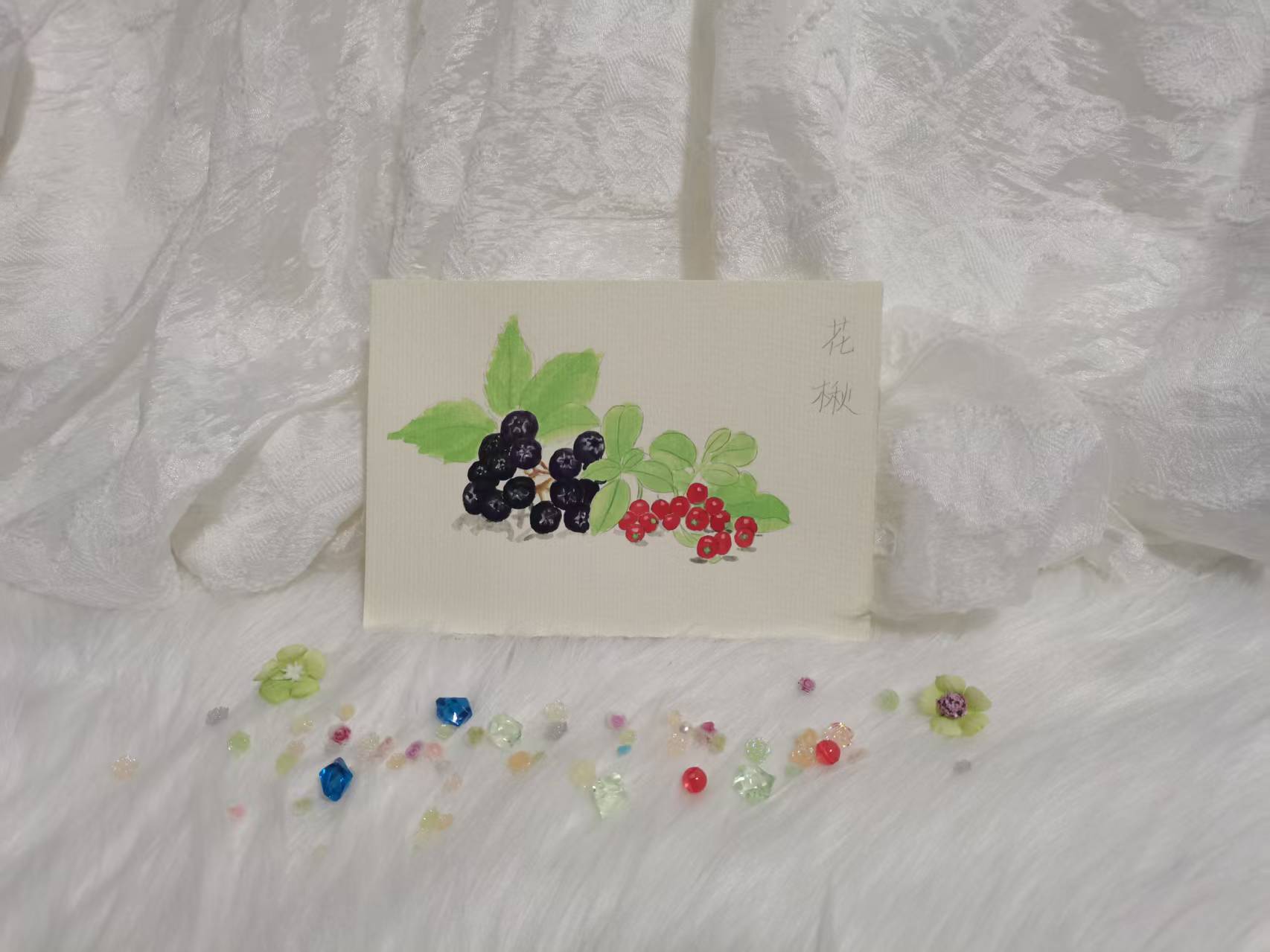 画了醋栗,又觉得还有相似的果子,想凑成一对很搭的小果子组合,那就选花楸吧。
