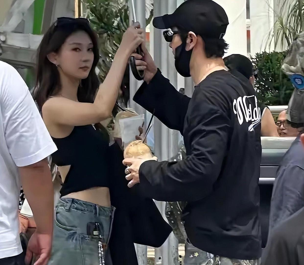 黄晓明在一旁很贴心地为对方撑伞,两人穿得也挺相似,像是一对情侣装,黑色上衣配牛仔裤,再加上白色鞋子,难怪有不少网友猜这位是黄晓明的新女友。