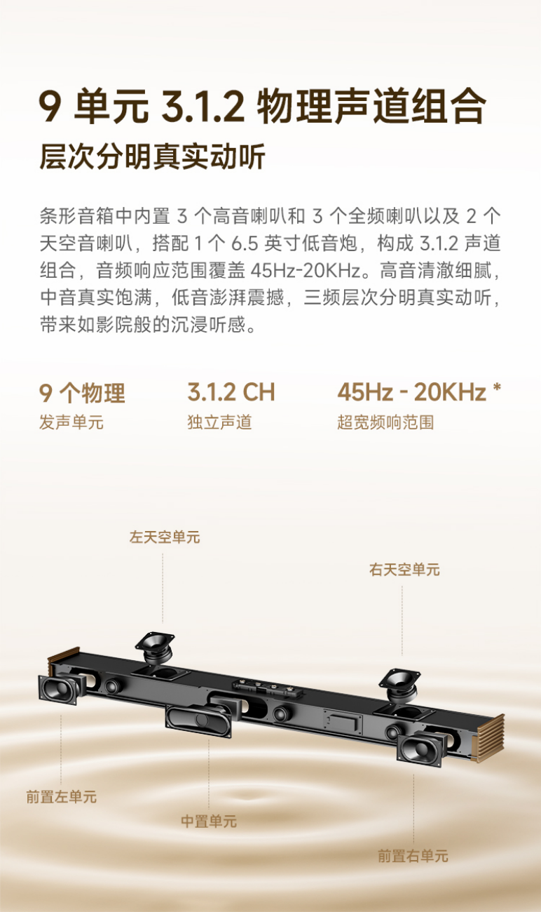 音效方面,追觅Pano S1音响配备了9单元3.1.2声道组合,通过精心调校的声学布局,实现了层次分明、真实动听的音效表现。无论是观看电影时的爆炸声、枪声,还是聆听音乐时的人声、乐器声,都能得到精准的还原和呈现,为你带来影院级的聆听盛宴。