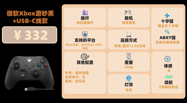 9、微 软X box磨砂黑+USB-C线款游戏手柄