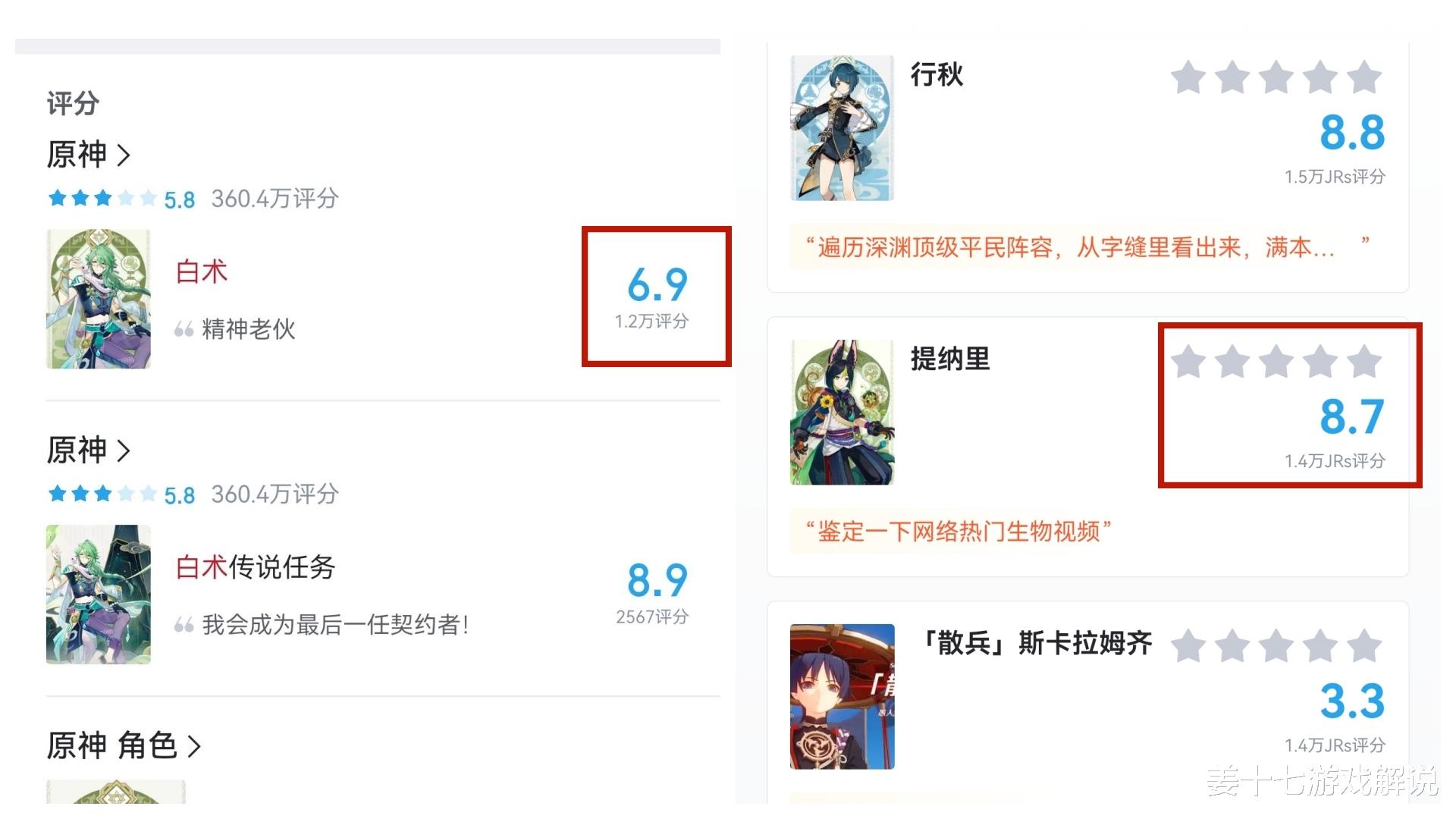当我们打开虎扑评分也能看出来的,曾经作为百万芙特T0队的白术,现在的地位可谓是岌岌可危,只有6.9分,而同为草系角色的提纳里,人家的分数却高达8.7分,哪怕是跟他在同一个地区的行秋,人家至今都还能维持在8.8分的状态下,现如今的白术可谓是真的惨到姥姥家了,可问题是白术咋混成这样了呢?