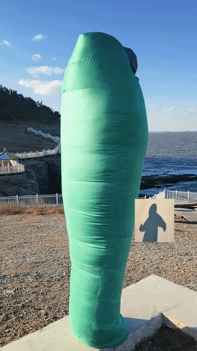 有一个小设计也是很贴心的。睡袋的底桶是一个立体的脚部空间,立体空间肯定会让我们的脚部更加舒适。设计师还在底桶处设计了小吊耳。让收纳晾晒更加方便。