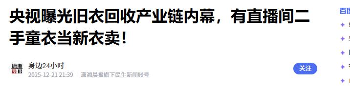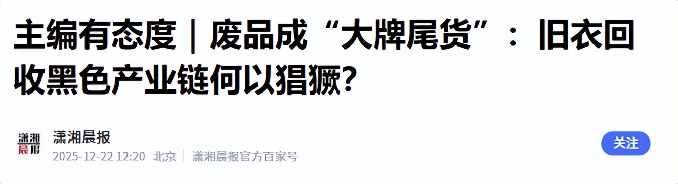 2025年底,央视记者暗访发现了一个全国性的旧衣回收灰色产业链。