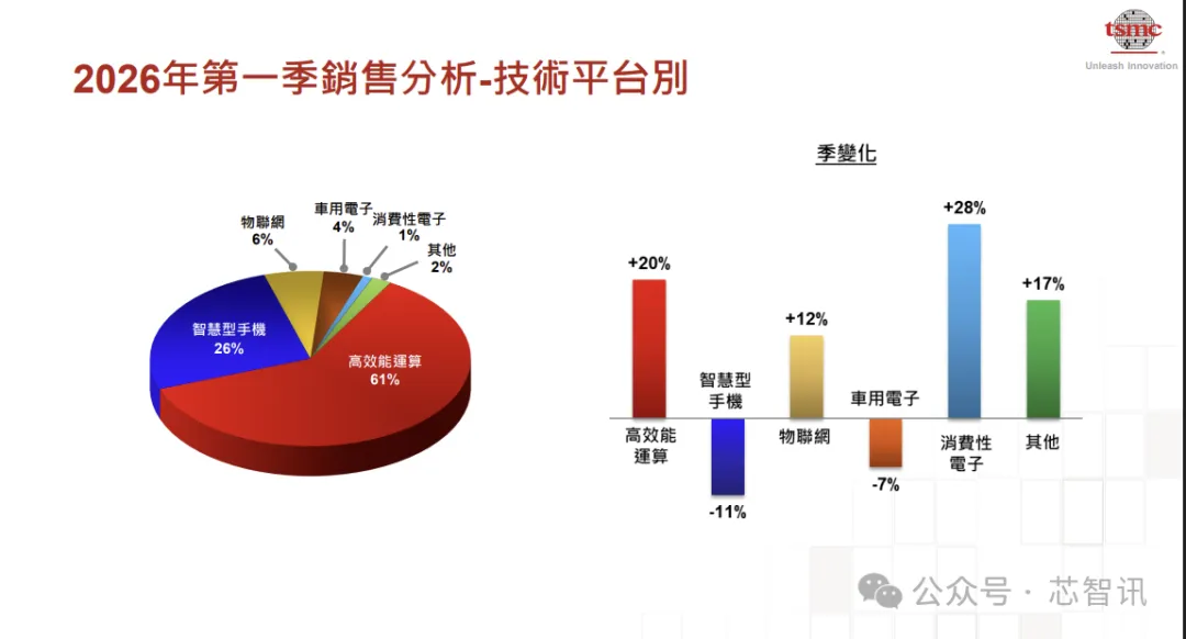 从个应用领域收入表现来看,台积电第一季高性能计算平台营收环比增长20%,物联网平台营收环比增长12%,消费性电子平台营收环比增长28%。