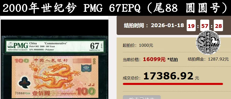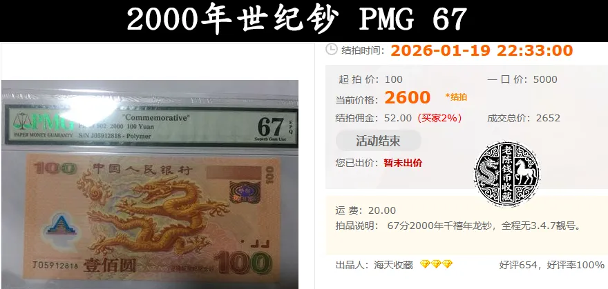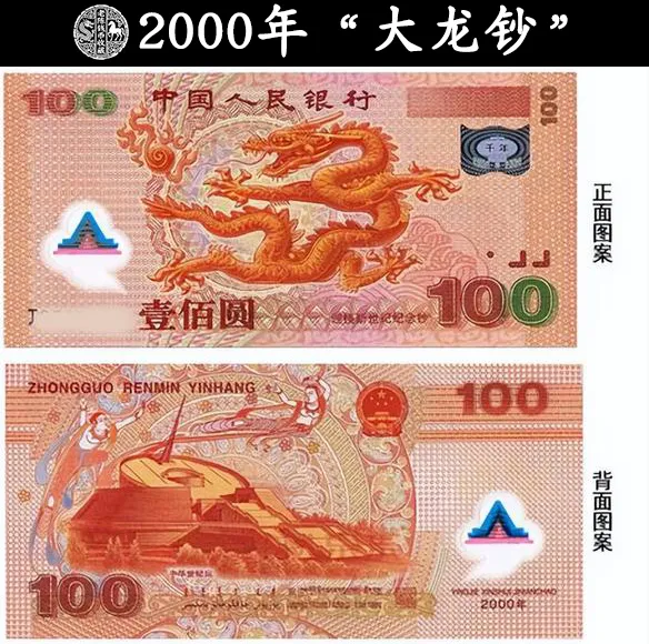 老陈这样说,大家知道说的是哪一张吗?看到下面这张图片,想必大家知道了吧!也就是这张为纪念2000年这一特殊年份,发行的100元纪念钞,俗称“大龙钞”。