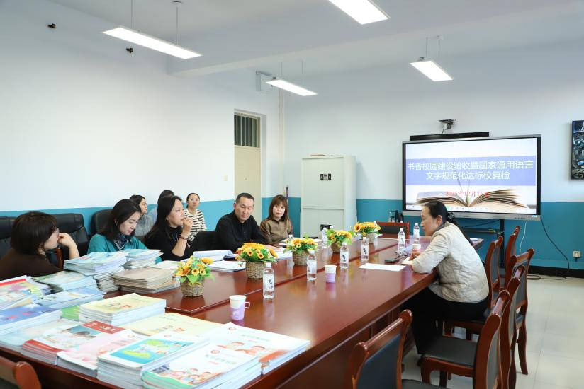 指导过程中,王彩霞老师在三楼会议室向指导组系统汇报了学校书香校园建设的整体规划、落地举措与阶段性成效。汇报紧扣 “和而不同,各美其美” 办学理念与 “和美教育” 核心,,重点介绍了分层递进的阶梯阅读课程、“晨诵午读暮省” 日常浸润模式,以及阅读课程化、跨学科渗透、数字技术赋能的教学创新;分享了读书节、经典诵读、和登央视的课本剧展演等特色活动,及家校共读、课题驱动教研的实践成果,提及智慧图书馆 “美悦书苑” 与多元考核激励机制的保障作用。汇报显示,师生在各级赛事中屡获佳绩,学校获评准格尔旗智慧阅读示范校,课本剧成区域特色品牌,3059人次参与阅读活动,“爱读书、读好书、善读书” 蔚然成风。未来学校将持续深化阅读改革,助力书香校园建设。