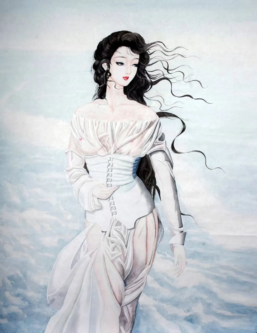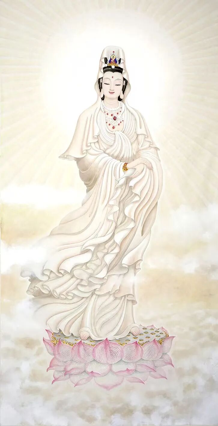 白衣观音,(画心高3.3米,宽1.8米)。原画共两幅——分别供奉于北京八大处灵光寺,广东东华禅寺。