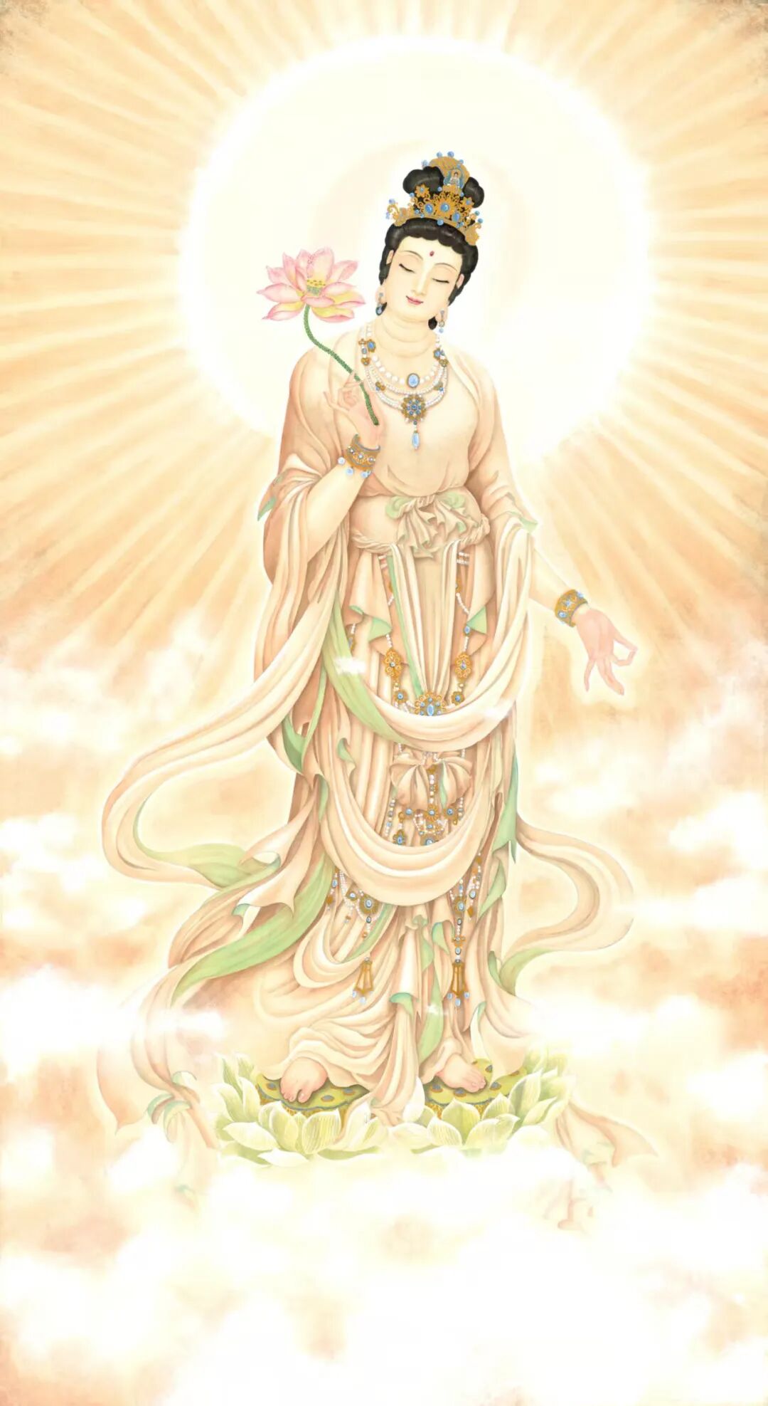 杨柳观音圣像,(画心高2.4米,宽1.2米)。由世界顶级藏家收藏。