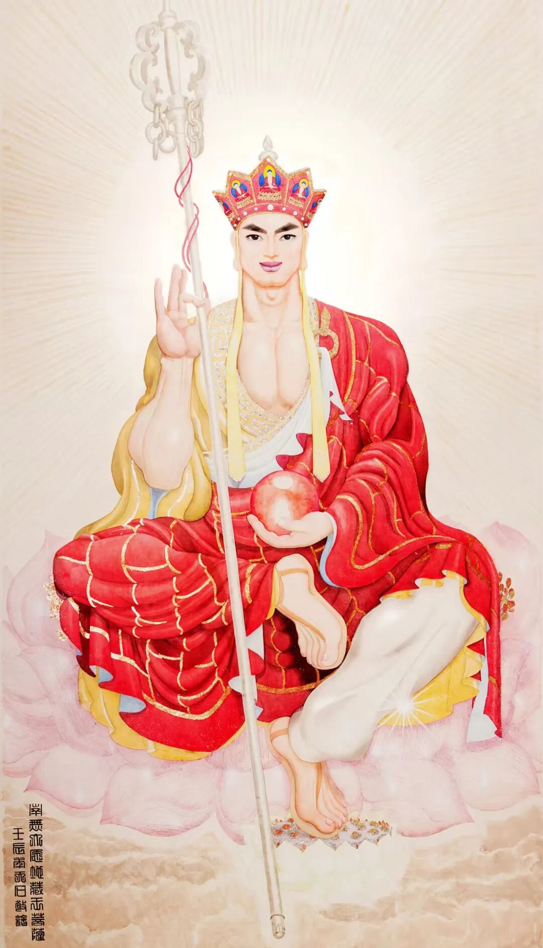 地藏王菩萨圣像,(画心高2.6米,宽1.5米)。供奉于九华山慧居寺寺。