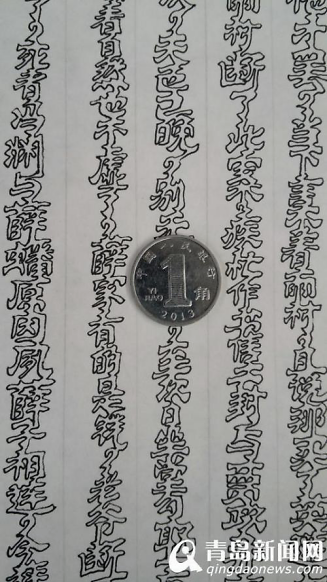 侯坤表示自己在练习的时候逐字增加着练习,先是一个字,两个字,三个字的练习。相比起单个的空心字而言,近两万个字的连写难度可想而知,尤其是通篇布局方面。