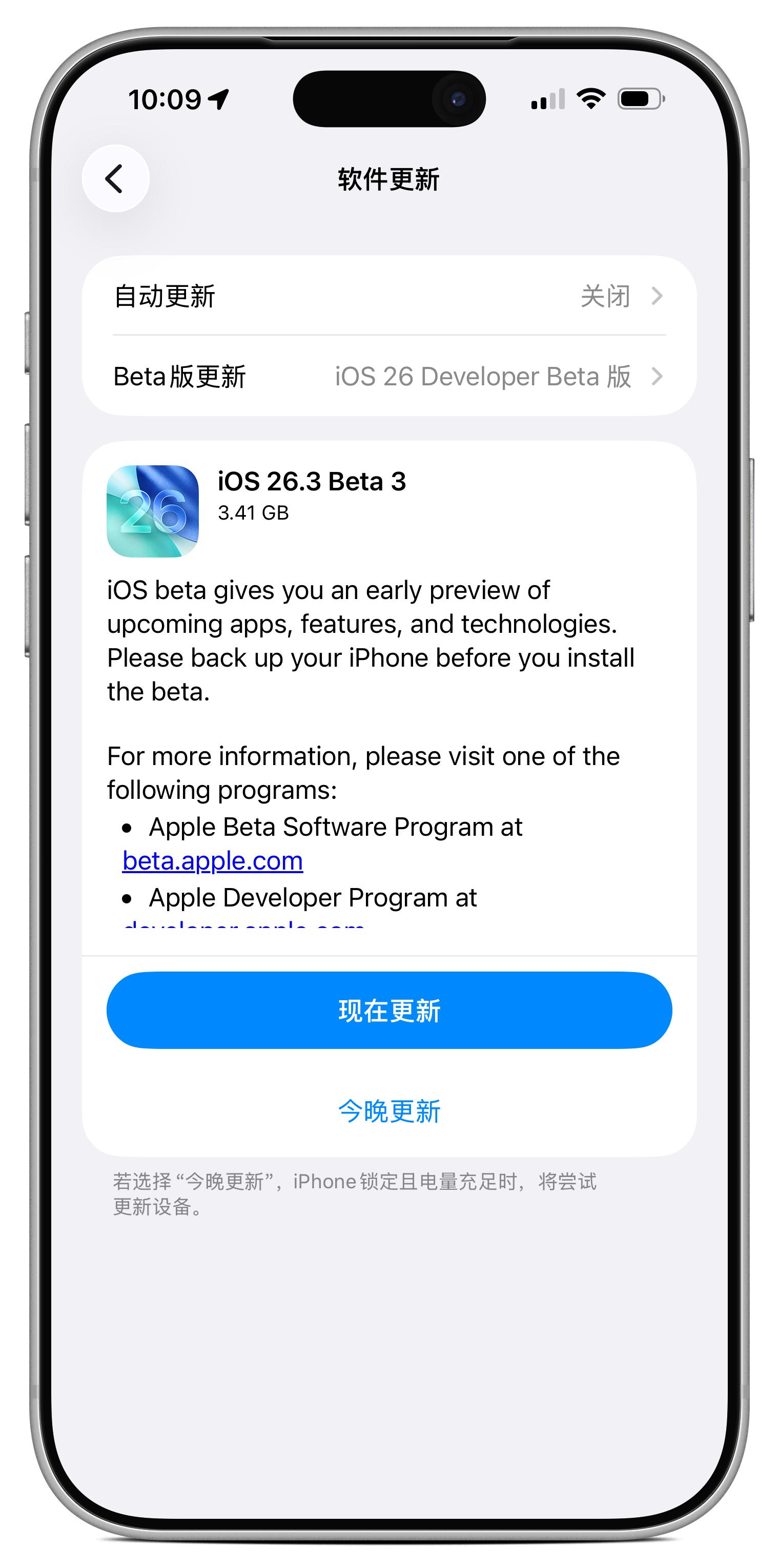 苹果发布iOS 26.3 Beta 3新版本,正式版或推迟至2月中旬
