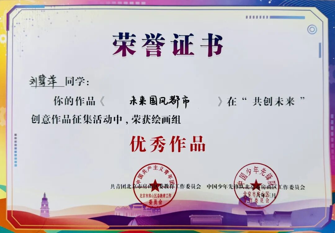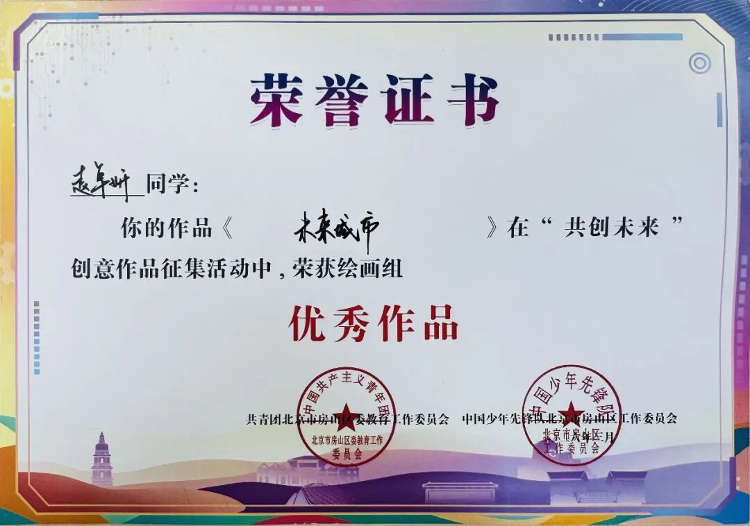 近日,由共青团北京市房山区委、中国少年先锋队北京市房山区委联合主办的 “共创未来” 创意作品征集活动评选结果揭晓。