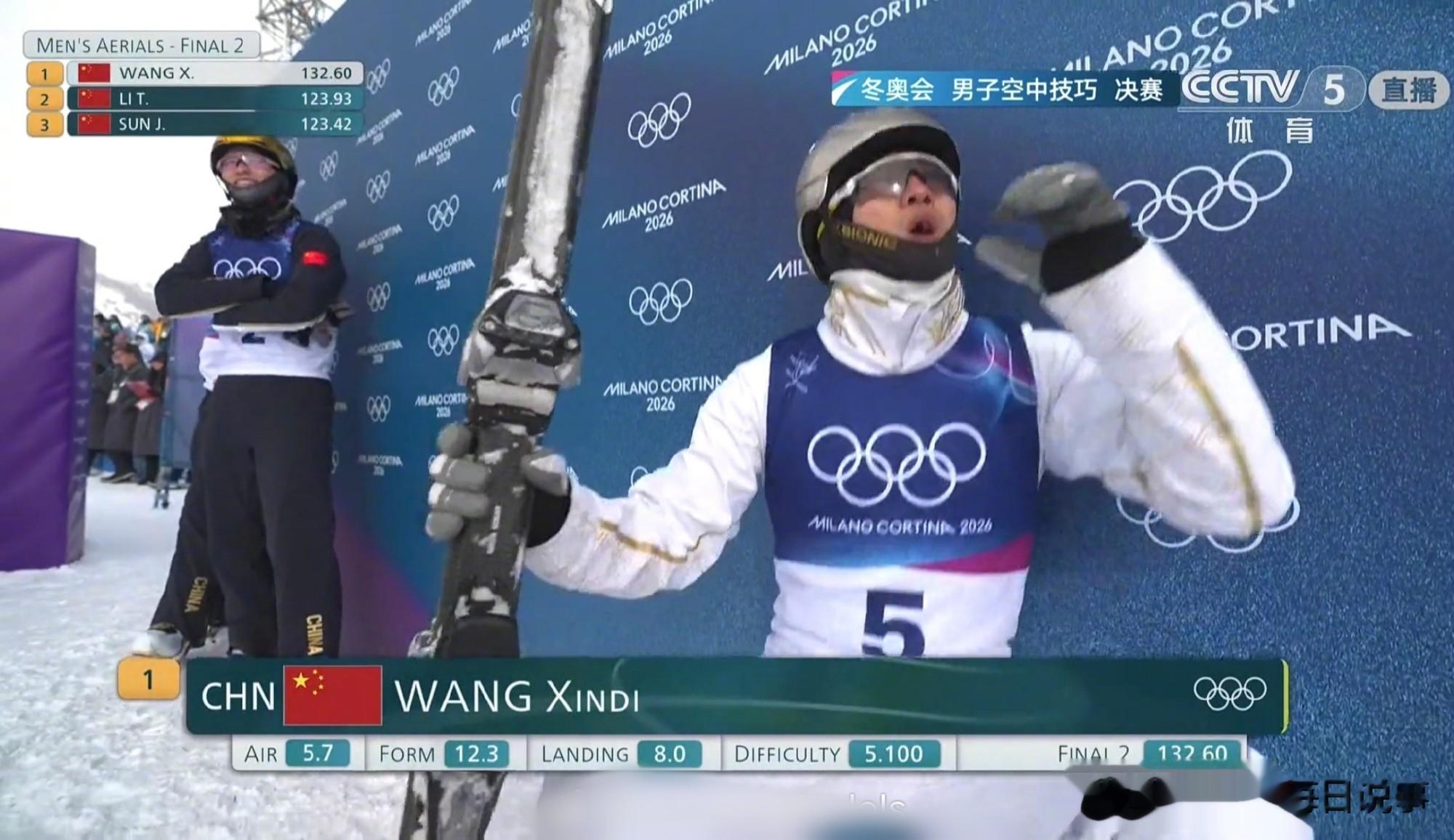 助跑、起跳、腾空、翻腾、转体,整套动作行云流水,空中姿态美到极致,落地稳稳钉在雪面上,没有半点晃动。裁判直接打出132.60分,全场最高分!仅仅1.02分的优势,绝杀对手,逆袭夺金!