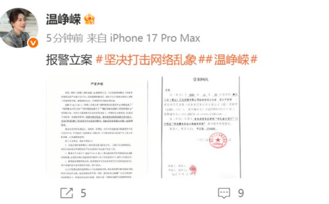 温峥嵘方面称,在权威媒体曝光其被AI盗脸侵权后,网络上自11月14日起,突然集中出现“温峥嵘团队把假货和AI联系起来了”、“温峥嵘AI事件反转”等热搜词条。经核查,这些词条的创建人、主持人以及在其下批量发布雷同不实信息的账号,均由长沙某传媒公司统一运营管理。声明明确指出,该公司及背后委托人的行为是“有组织、有预谋、有针对性地捏造并批量发布不实信息”,已严重损害温峥嵘名誉及其公司商业信誉,涉嫌刑事犯罪。目前,温峥嵘方面已完成取证,并于11月29日报案,公安机关已依法受理。