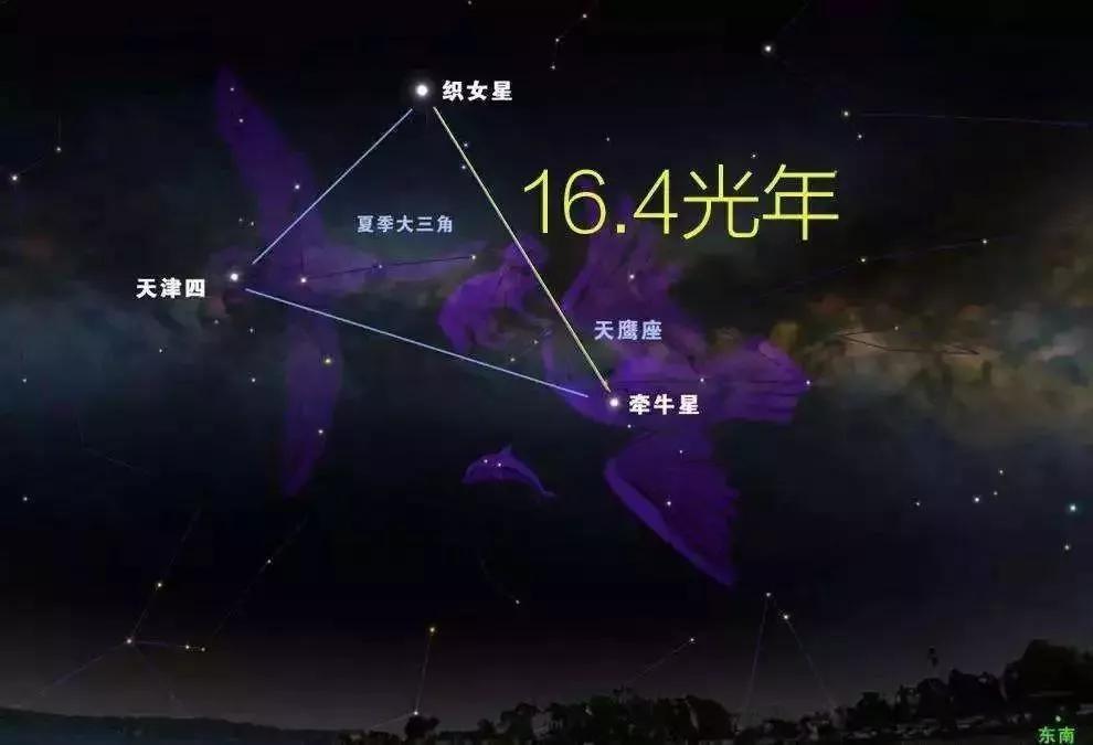 那么,牛郎星与织女星相距有多远呢?根据天文学家的测量,牛郎星(北半球的天津四)与织女星(南半球的天津四)之间的最近距离约为35光年。光年是衡量宇宙尺度的一个重要单位,它表示光在一年内可以行走的距离。换句话说,如果牛郎星和织女星之间有一条直线的话,那么这条直线的长度就是35光年。