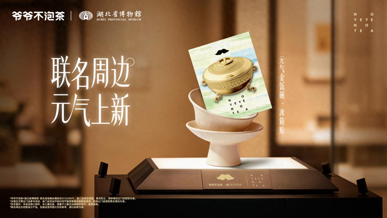 此次爷爷不泡茶与湖北省博物馆携手,联合推出新品“武汉元气蛋”和联名周边,让消费者可以把千年楚韵喝进日常。湖北省博物馆以守护、活化荆楚文脉为使命,致力于让传统文化可感可触、可亲可玩;爷爷不泡茶深耕荆楚风味、立足本土基因,坚持用一杯杯茶饮讲好湖北故事,让地域文化以年轻态、生活化方式破圈。双方基于共同的文化传播目标达成合作,以文化焕新与消费创新为方向,推动博物馆文化与市井消费场景深度融合。