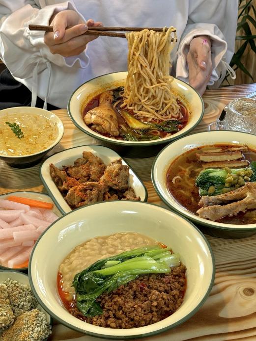 主打面食和茶饮的小店,口味清爽不油腻。招牌葱油拌面香气扑鼻,面条筋道,葱油香味十足;番茄牛腩面汤底浓郁,牛腩软烂。