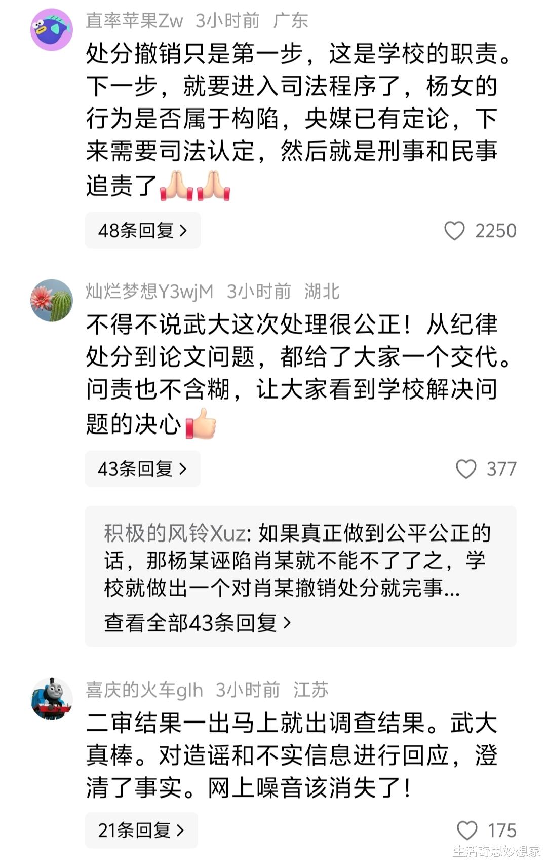 二审判决后,武汉大学宣布撤销对肖某瑫的处分。