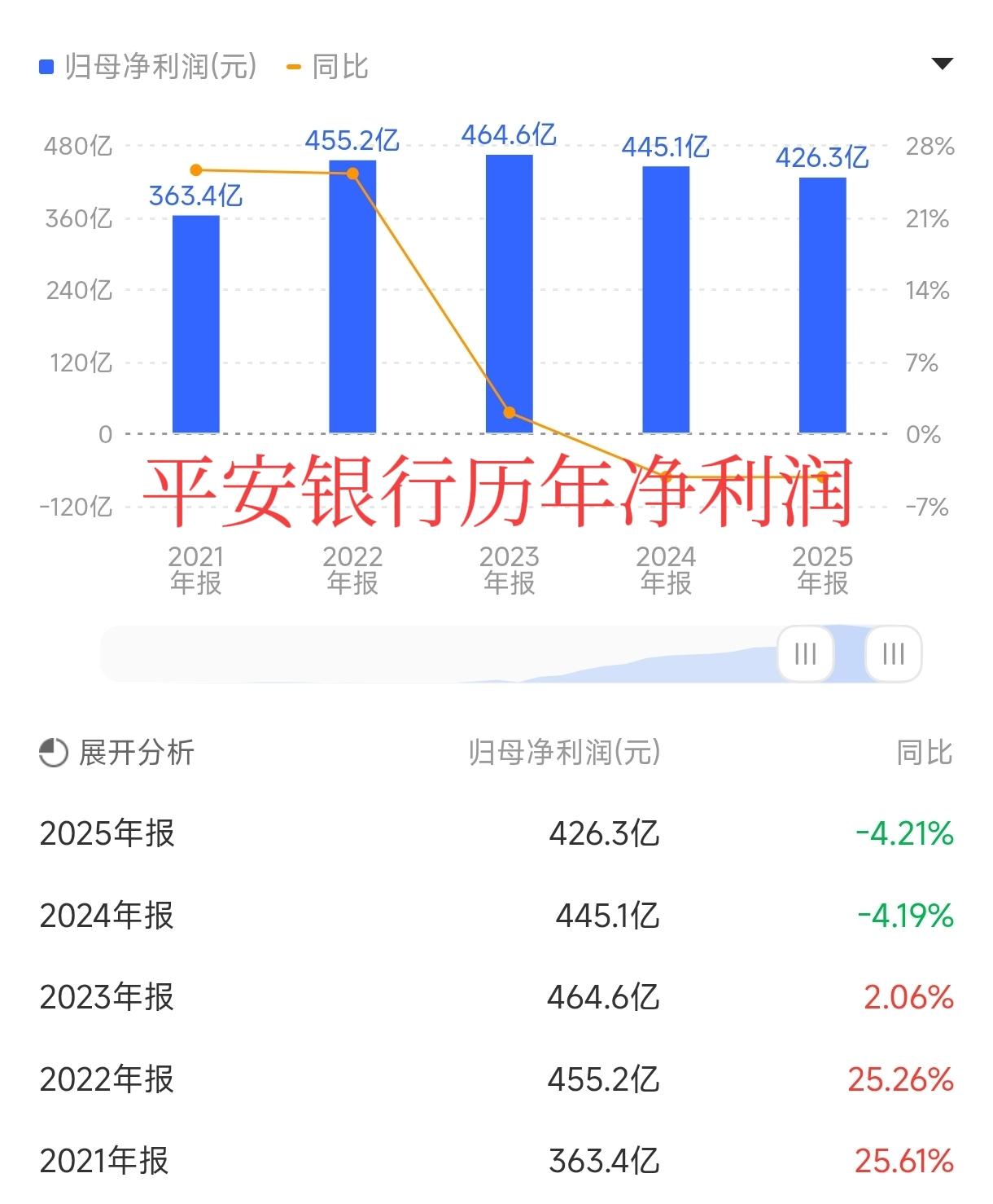 平安银行业绩回顾2025年,平安银行实现营业收入1314亿元,同比下降10.4%,实现归母净利润426.3亿元,同比下降4.21%。这意味着,平安银行营业利润连续第三年下降,净利润连续第二年下降,对比其他上市银行,平安银行的业绩表现可以说相当弱势了。