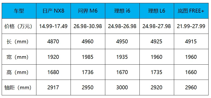 和领克08EM-P、小鹏G7、乐道L60、零跑C16/C11、理想i6、别克至境E7、智己LS6等车型、丰田铂智3X、比亚迪大唐、rav4荣放等车型相比,全新东风日产全新NX8值不值得推家里?