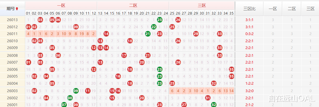 大号区(25-35)需留意回补,推荐28、33,其中33为近10期高频热号,28为遗漏15期的冷号,冷热搭配更合理。综合来看,前区奇偶比大概率回归均衡,推荐3:2或2:3,避开极端比例。