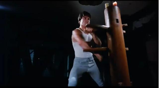 它的故事是讲,主角杰森·史迪威在老爹开的道场学习空手道,同时他也是李小龙狂热的粉丝,房间里贴满李小龙的海报,又经常拿咏春木人桩来练习拳法。