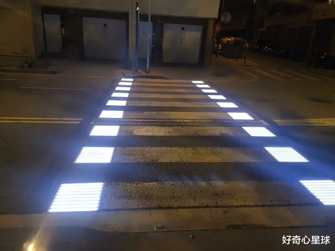 当您过马路时,此人行横道会亮起,以提高驾驶员的能见度
