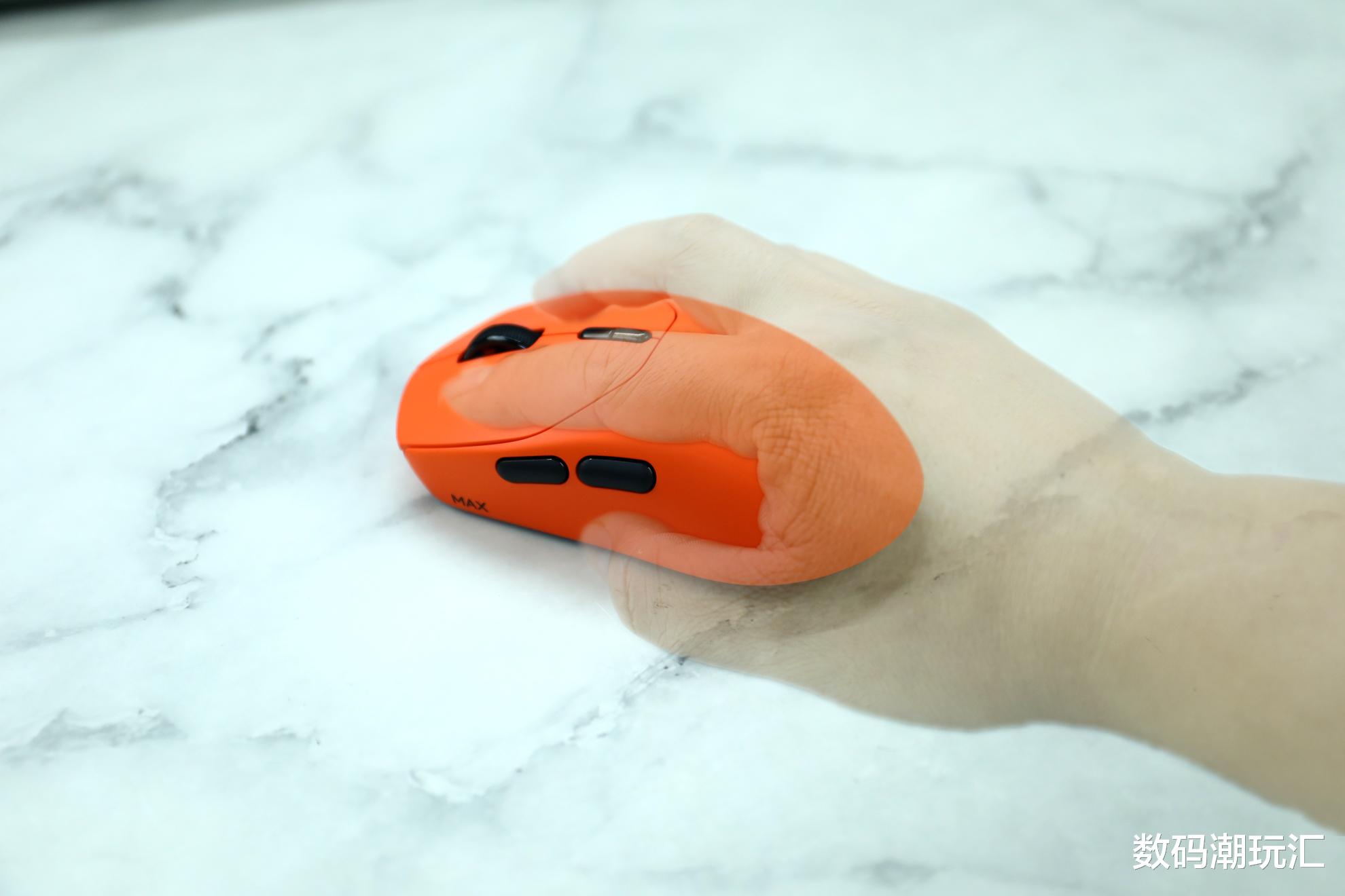 最让我惊艳的是模具细节:侧腰做了优雅收腰内凹,抓握时手指能自然贴合,抬鼠时发力更稳;背部弧度平缓,趴握时不会顶掌心,长时间架枪也不酸胀 —— 这些优化完全戳中了中小手玩家的握感痛点。