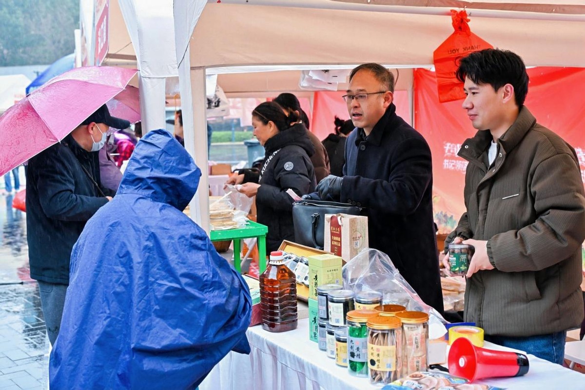 岁末杭城,运河广场与西湖文化广场上人头攒动。来自杭州市淳安县的各色山货整齐铺开,辣酱、山核桃、鱼干、高山茶飘散着“千岛湖味道”,市民们拎着大包小包,在摊位前品尝询价。而摊位后,一群佩戴党徽的“特殊推销员”——村书记、乡镇书记甚至县委书记,正热情地介绍着自家农产品。这场“书记进城卖山货”的城乡之约,已持续八年,从最初枫树岭镇28个村的集体行动,发展为如今淳安全县23个乡镇的“总动员”,成为杭州岁末一道温暖的风景线。