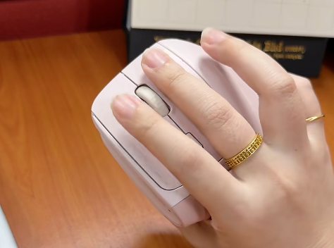 英菲克 X9PRO 的无线连接采用隐藏式接收器设计,使用时简洁不占空间,收纳方便,同时支持蓝牙切换,可在多设备间灵活操作,兼容性较好。机身材质的雾面磨砂搭配亲肤设计,手感舒适且防滑,长时间使用手掌不易出汗打滑。重量适中,配合57°垂直角度,操作时手腕压力较低,适合长时间办公或轻度游戏使用。缺点是中手尺寸限制了适用手型,小手用户可能握感略宽,大手用户则可能略窄,另外隐藏式接收器虽然方便收纳,但偶尔拔插略紧,对手速快的用户稍有影响。