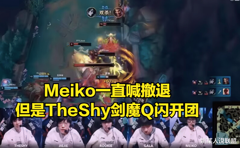 众多观众好奇,IG其他选手目睹TheShy剑魔的越塔操作后,会有什么反应?然而,一件令诸多TheShy粉丝深感无奈之事发生,那就是IG团战指挥太混乱,尤其是meiko喊话TheShy别越塔的发言,更是引起THESHY粉丝吐槽。