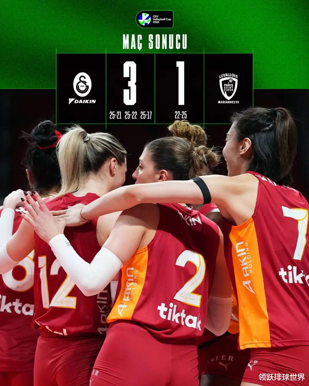 近日,伊斯坦布尔的排球气氛高涨,女排欧联杯1/4决赛第二回合迎来焦点之战,中国女排王媛媛效力的加拉塔萨雷坐镇主场,再度对阵来自法国的巴黎圣云女排。首回合客场鏖战五局取胜的加拉塔萨雷,这一场没有再给对手任何逆转空间,经过四局较量,以3-1(22-25,25-21,25-22,25-17)再胜巴黎,两回合完成“双杀”,强势挺进欧联杯四强。