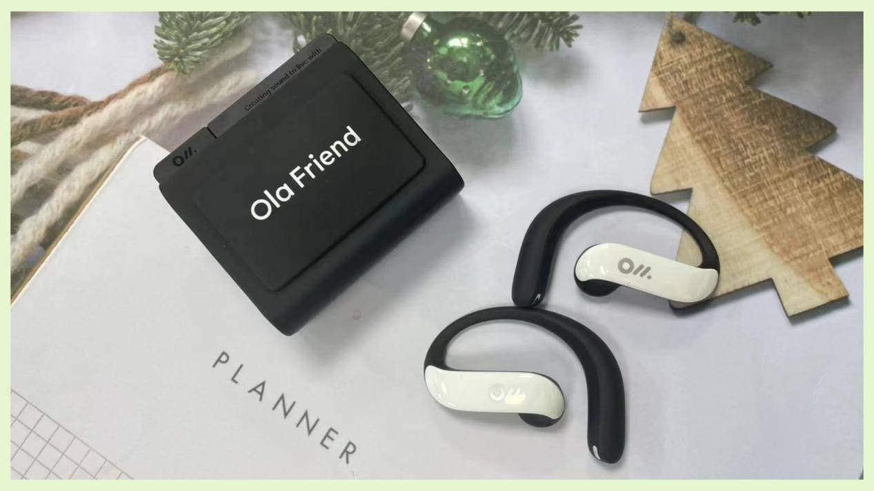 OlaFriend耳机的外观是一个小钱包的造型设计,看起来非常可爱,特别具有辨识度。佩戴上,耳机采用了27.5°黄金夹角耳挂,佩戴稳定性不错,运动戴着也不容易掉。不过发声口贴合一般,耳廓会有一点点压感,长时间佩戴可能稍微累耳。