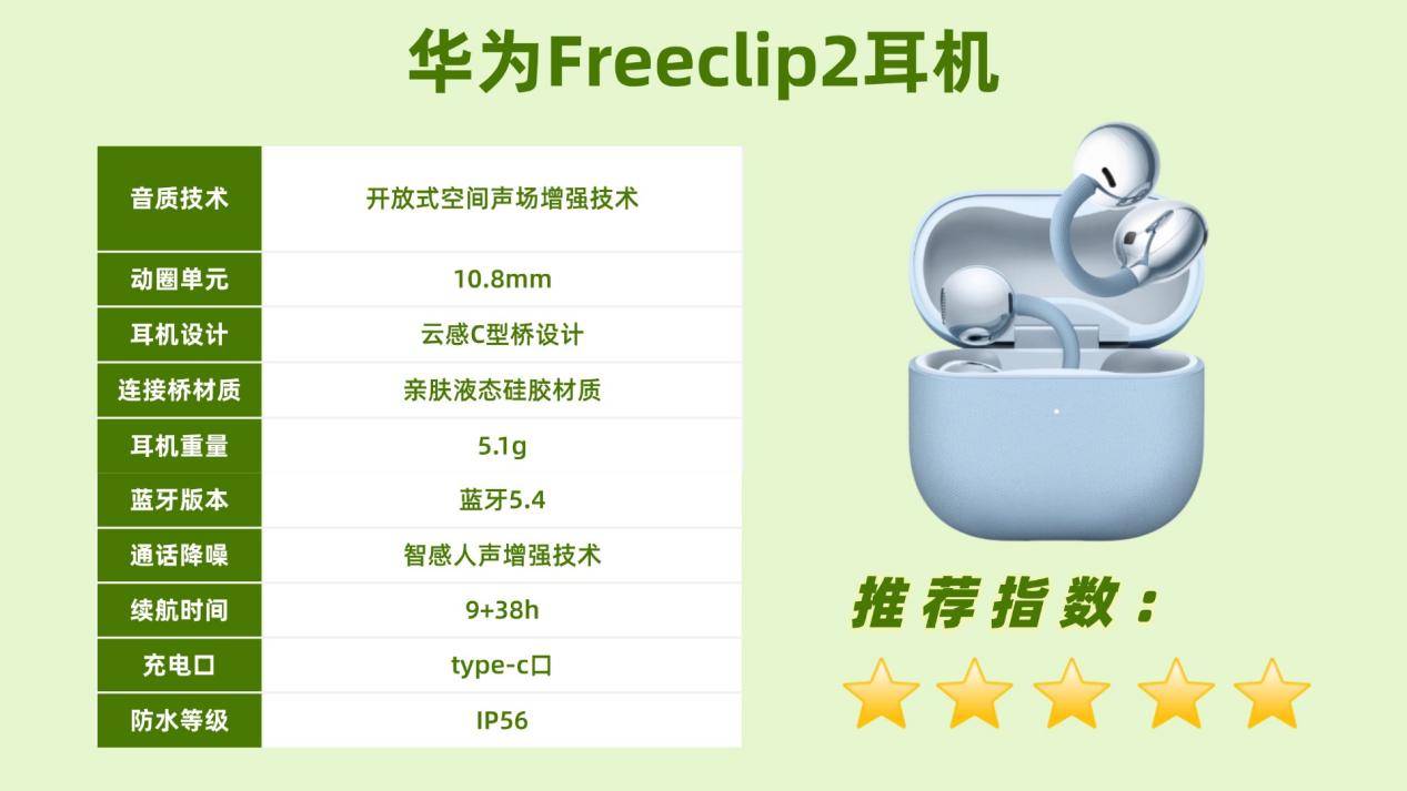 华为FreeClip 2耳机在佩戴上采用了C型结构设计,戴着非常稳,无论走路还是跑步基本都不松动。单耳只有5.1g,配上液态硅胶和记忆金属,耳机戴着贴合又舒适,长时间佩戴也不会压耳朵,适合通勤或久戴办公。