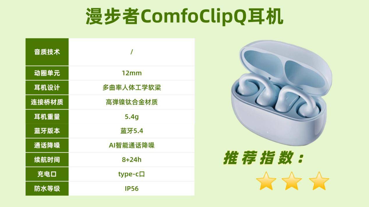 漫步者ComfoClip Q耳机在佩戴上采用了人体工学软梁结构设计,让耳朵的受力更均匀,不容易夹耳。单耳的重量只有5.4g,存在感很弱,长时间戴也不累。运动时稳定性很不错,跑步、骑车都不容易掉。