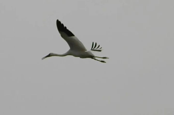 而且自2021年以来,鸟中“活化石”白鹤每年都有过境南湖的情况。特别是今年11月9日开始,已有10余只白鹤经南湖飞过。