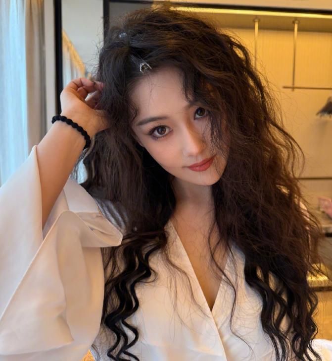 照片中张馨予披散着一头长发,化着大红唇妆容出镜,整个人看起来风情万种。