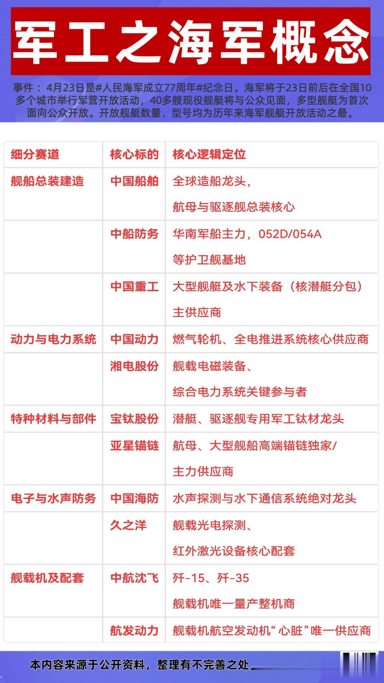 结合这次海军大规模开放的事件,后续军工板块可以重点留意这几个方向: