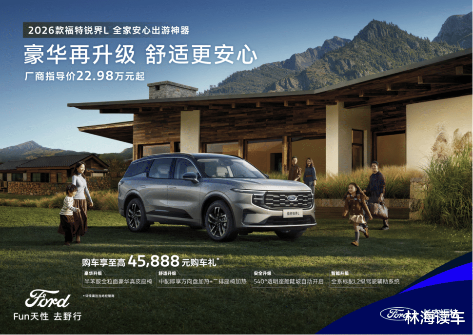 一直以来,福特锐界L不断倾听用户真实用车需求,致力于为中国家庭提供更舒适的驾乘体验。此次2026款福特锐界L上市焕新,带来了豪华、舒适、安全和智能四大升级,主力车型,加配不加价。